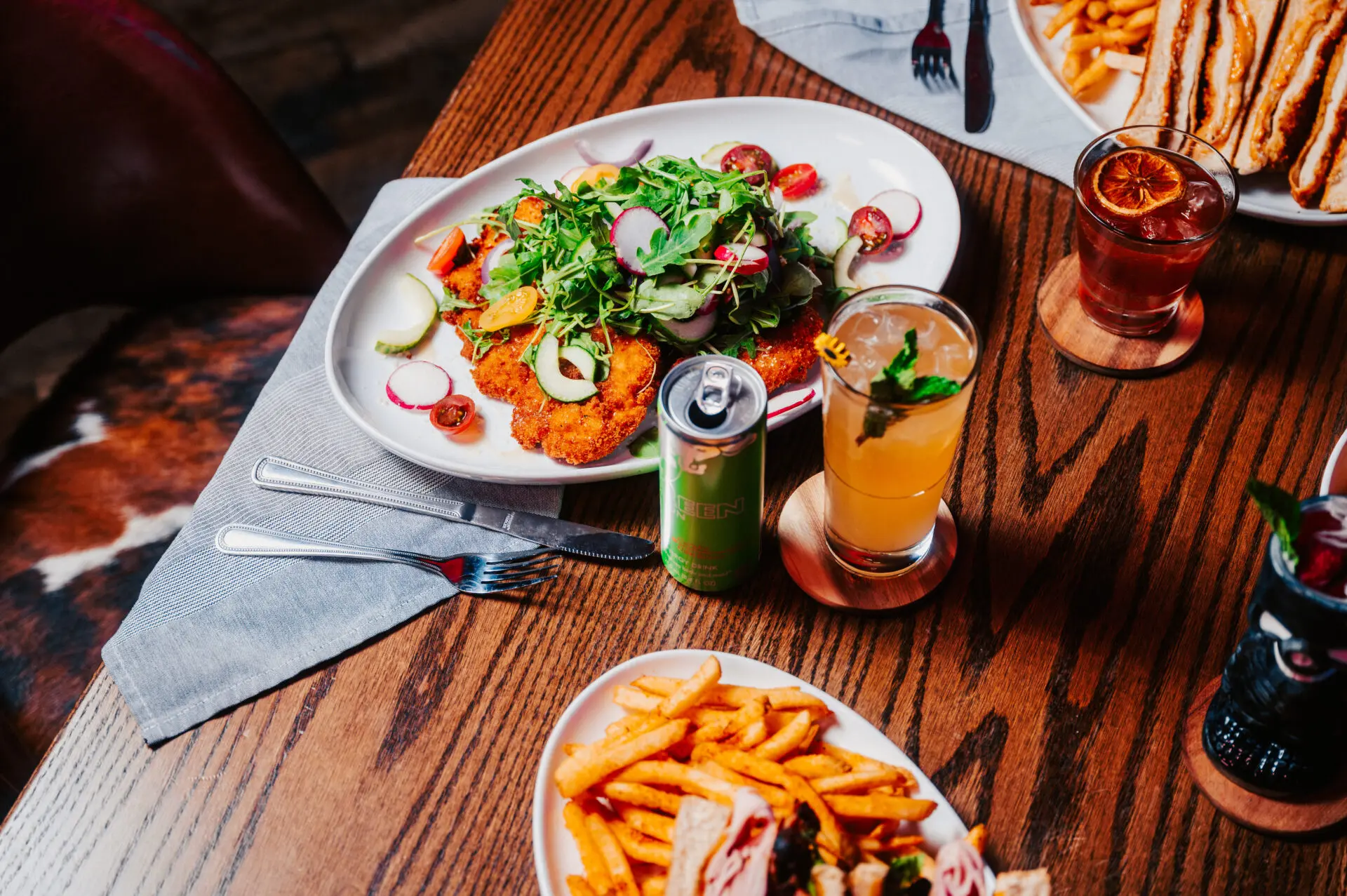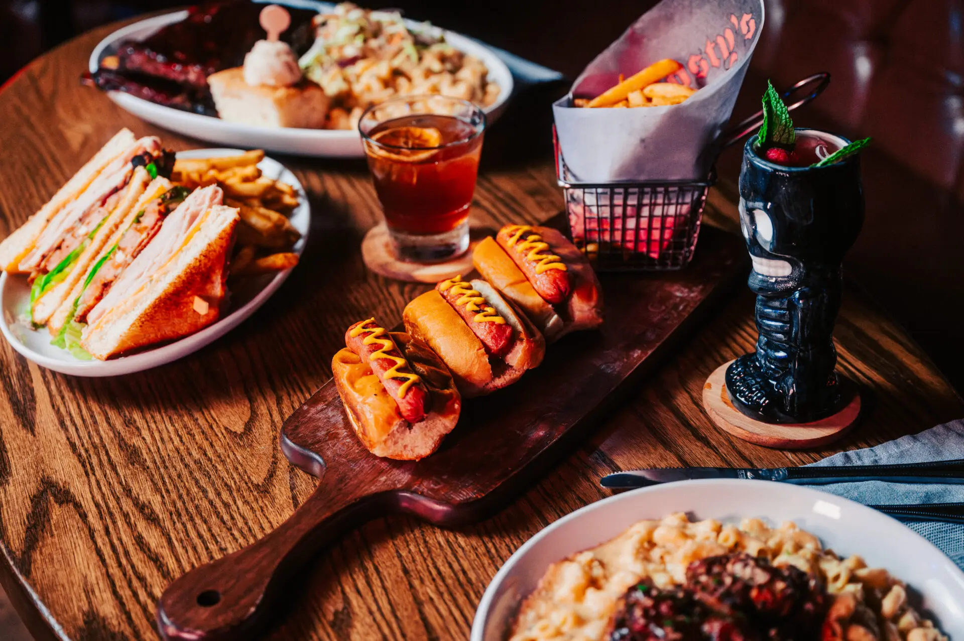 smoked turkey breast, pepper bacon, sharp cheddar, thick cut tomato, crispy romaine lettuce, bone marrow thousand island dressing, Texas toast, fries