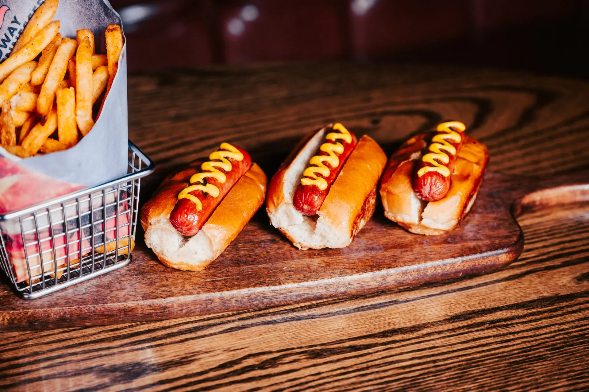 Posty’s preferred grilled hot dog sliders, toasted bun, mustard, fries *Try it loaded with smoked brisket black bean chili and shredded cheddar cheese +5