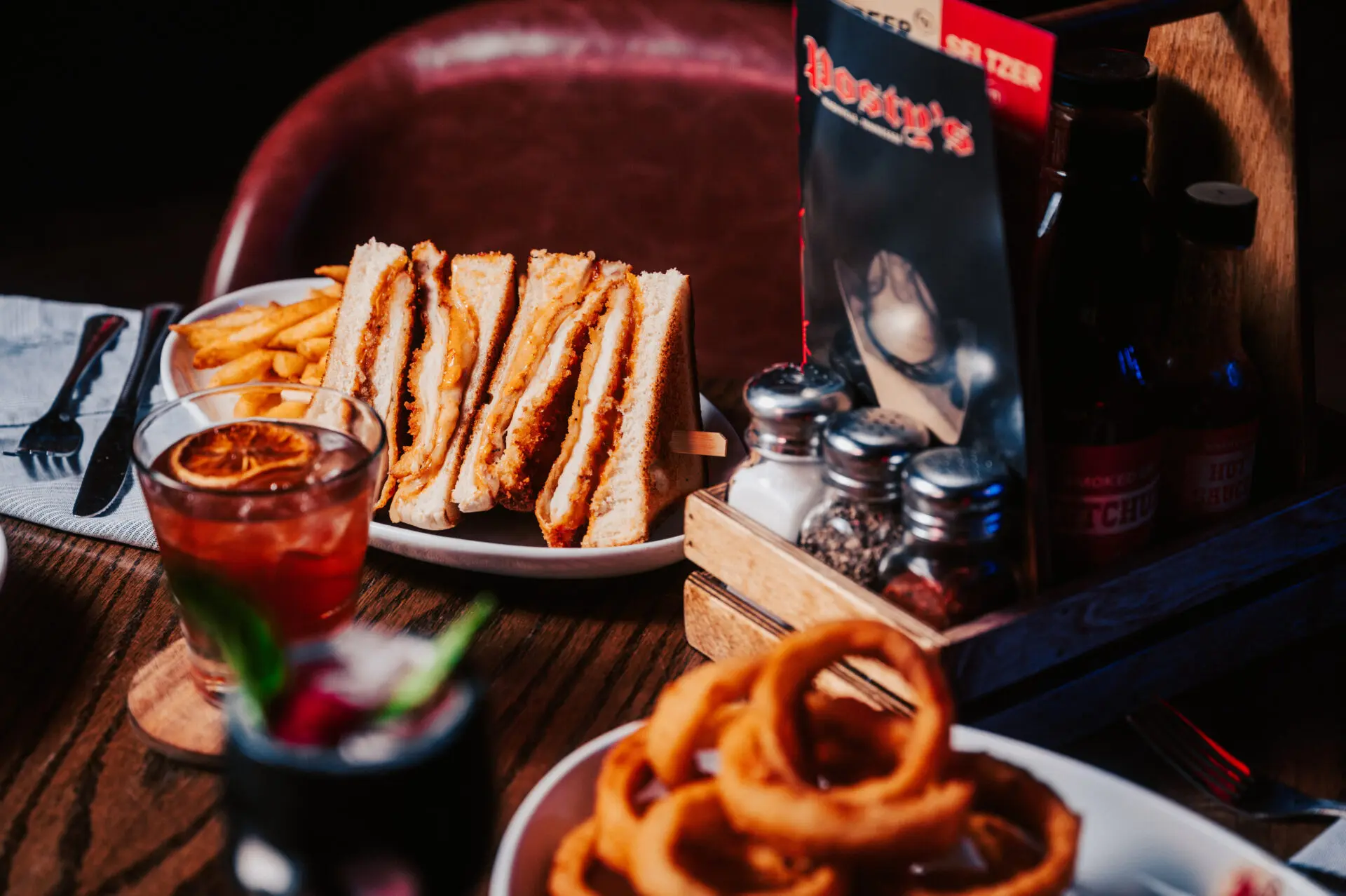 double stacked brisket & steak beef patties, bourbon caramelized onions, cheddar cheese, secret sauce, Texas toast, fries